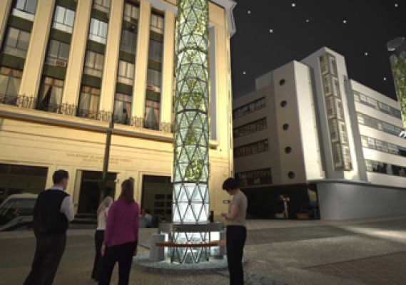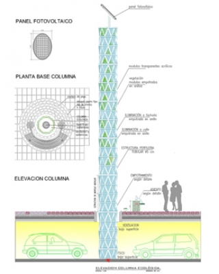 Es una estructura prefabricada de acero, acrílico y vegetación, desmontable que permite su traslado eventual en los eventos masivos. Genera electricidad con paneles fotovoltaicos y/o aerogeneradores pequeños. |
