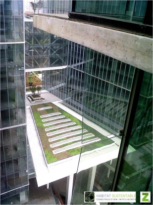 Es un Techo Verde extensivo con vegetación de Sedum y aislación térmica de losa invertida. Esta compuesto de poliestireno extruido XPS de Transaco, Lámina Separadora TGV 21 de ZinCo (empresa alemana a la cual representamos), Bandeja retenedora y drenante Floradrain FD 25-E de ZinCo, Filtro SF de ZinCo, Medio de Crecimiento extensivo de Habitat Sustentable licencia ZinCo, Vegetación de Sedum de Vivero Bestplant (empresa aliada).